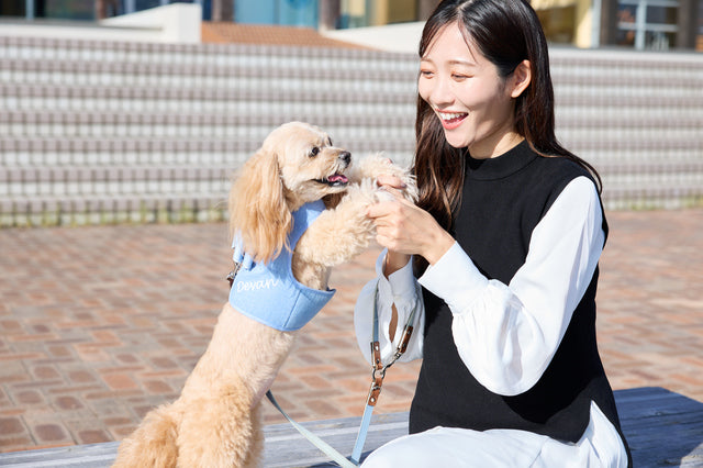 持ち手は伸び縮みが可能。使用しない時は折りたためるのでお散歩バッグに入れて目立たずに持ち運べます。
